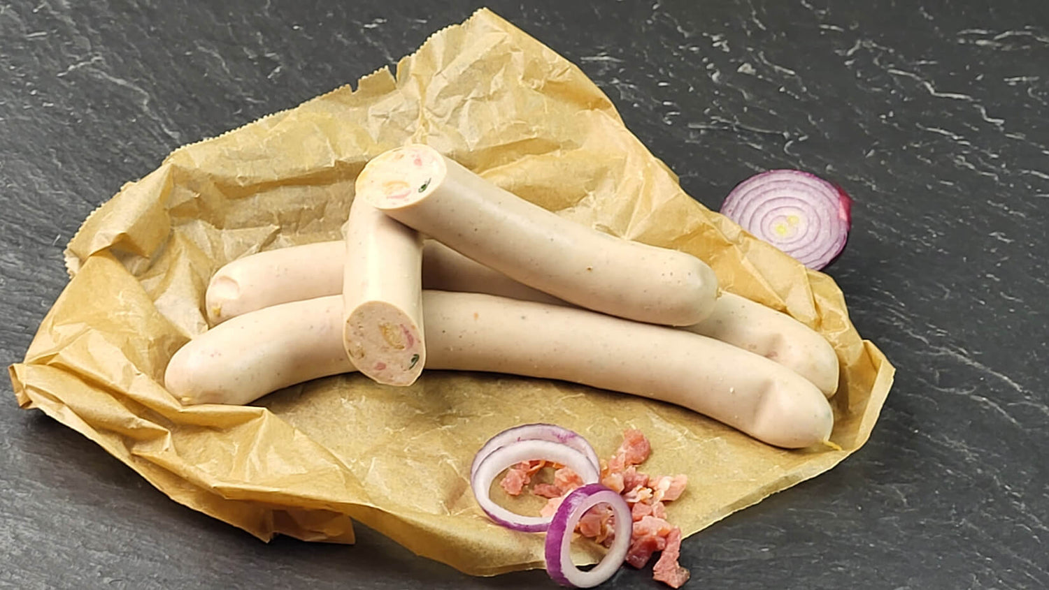 Tauche ein in das Flair des Elsass und entdecke unsere einzigartige Bratwurst Elsässer Art! Fein zerkleinertes Brät trifft hier auf eine unwiderstehliche Kombination aus herzhaftem Dörrfleisch, aromatischen Lauchzwiebeln, knusprigen Röstzwiebeln und frischen Zwiebeln.