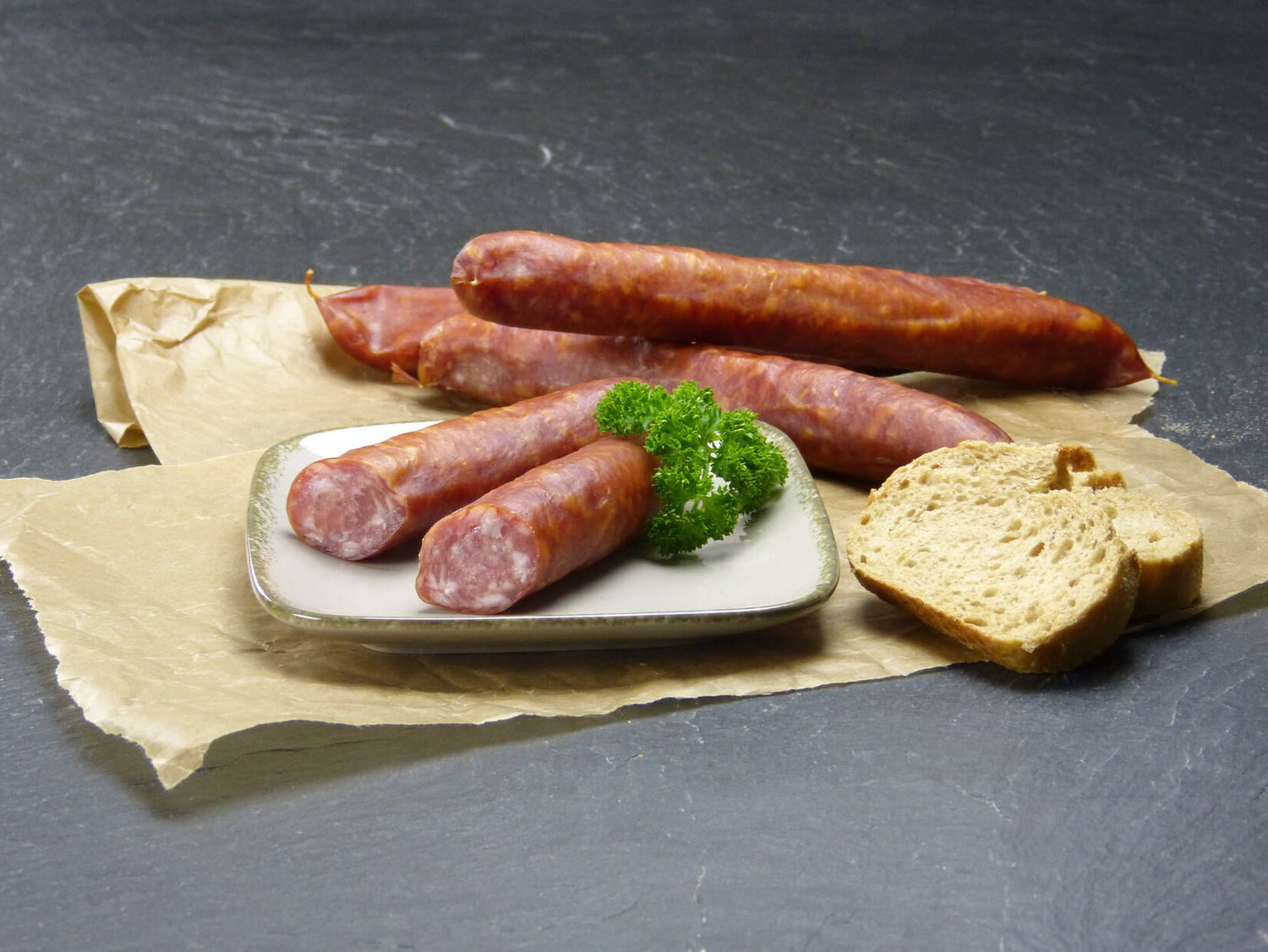 Grobe Mettwurst vom EIFEL Schwein - 3 Stück á 100g ist auf Lager und wird versandt, sobald es wieder verfügbar ist