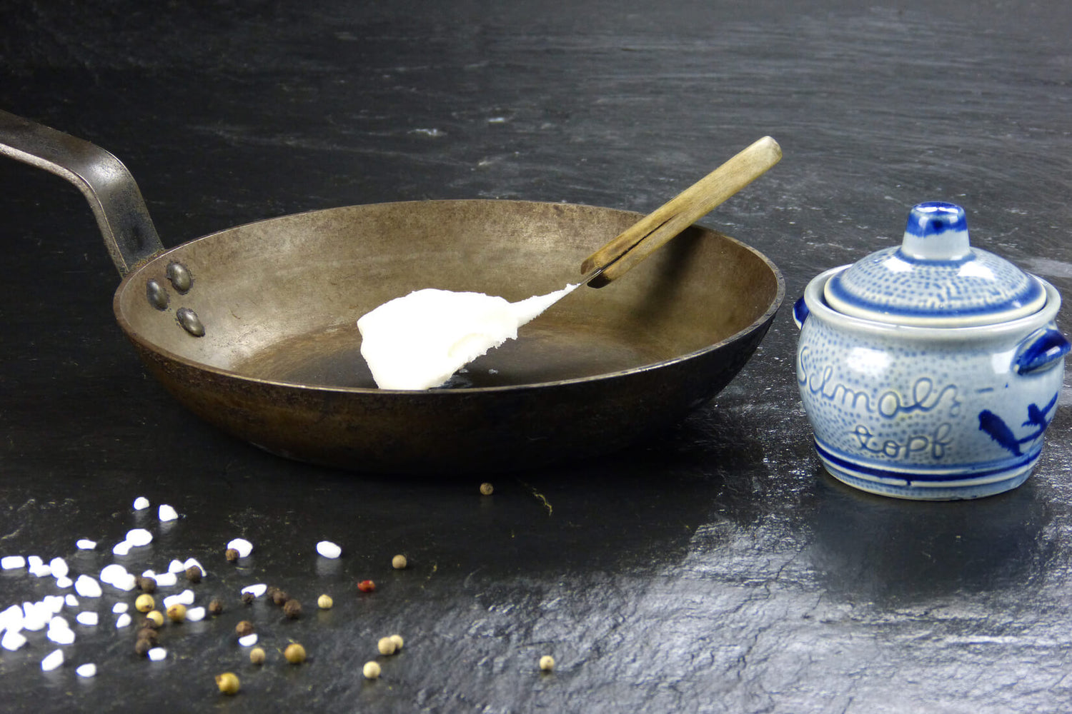 Unser Schweineschmalz wird nach alter Handwerkstradtion aus Flomen ausgelassen. Es ist rein weiß und von besonders feiner Konsistenz. Da Wasser und Eiweiße beim "Auslassen", also beim Ausbraten der Flomen mit niedriger Temperatur, entzogen wird, ist es praktisch bei dunkeler Lagerung sehr lange haltbar und wurde deshalb früher auch zur Konservierung z.B. von Rillettes (in Fett konserviertes gegartes Fleisch) eingesetzt. Dank seines Aromas gibt es deftigen Eintöpfen und Braten eine besondere Note, aber selbst traditioneller Kuchenteig kann etwas Schmalz anstelle von Butter gut vertragen!