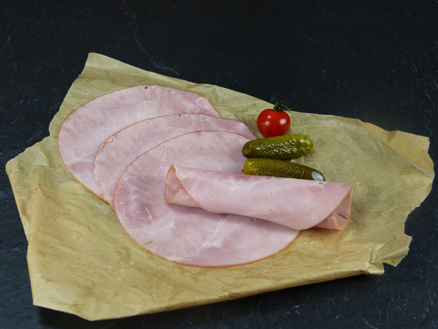 Bereits portioniert: Der Hinterschinken ist bereits in praktische Scheiben geschnitten und somit sofort einsatzbereit.