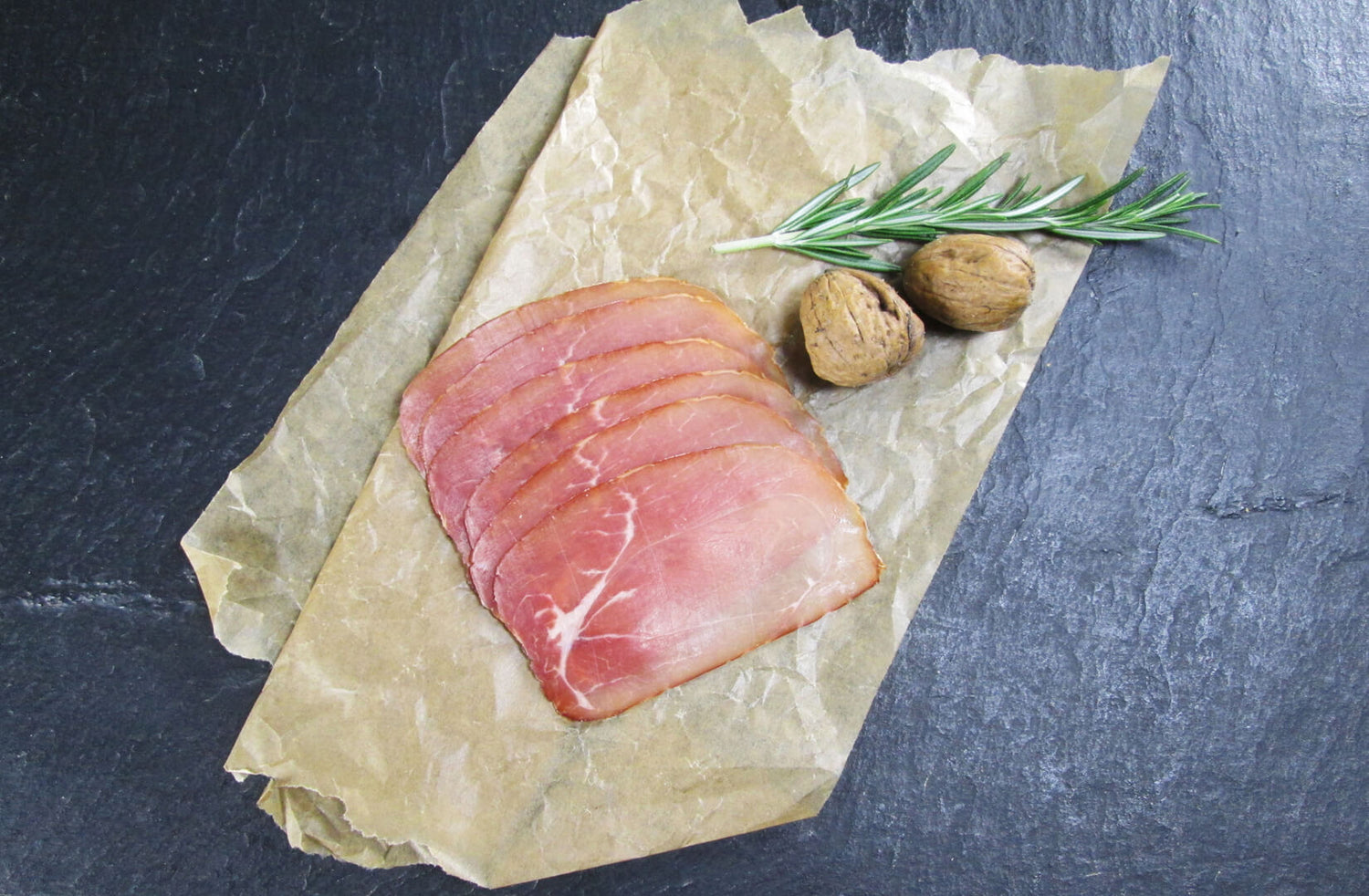 Der magerste Rohschinken aus unserem Sortiment, hergestellt wird der Schinken aus dem Fleischstück Schweine-Nuss einem Teil der Schweinekeule. Der Nussschinken ist sehr mager und überzeugt durch einen besonders herzhaften Geschmack. Nussschinken lässt sich an den kleinen Scheiben erkennen.