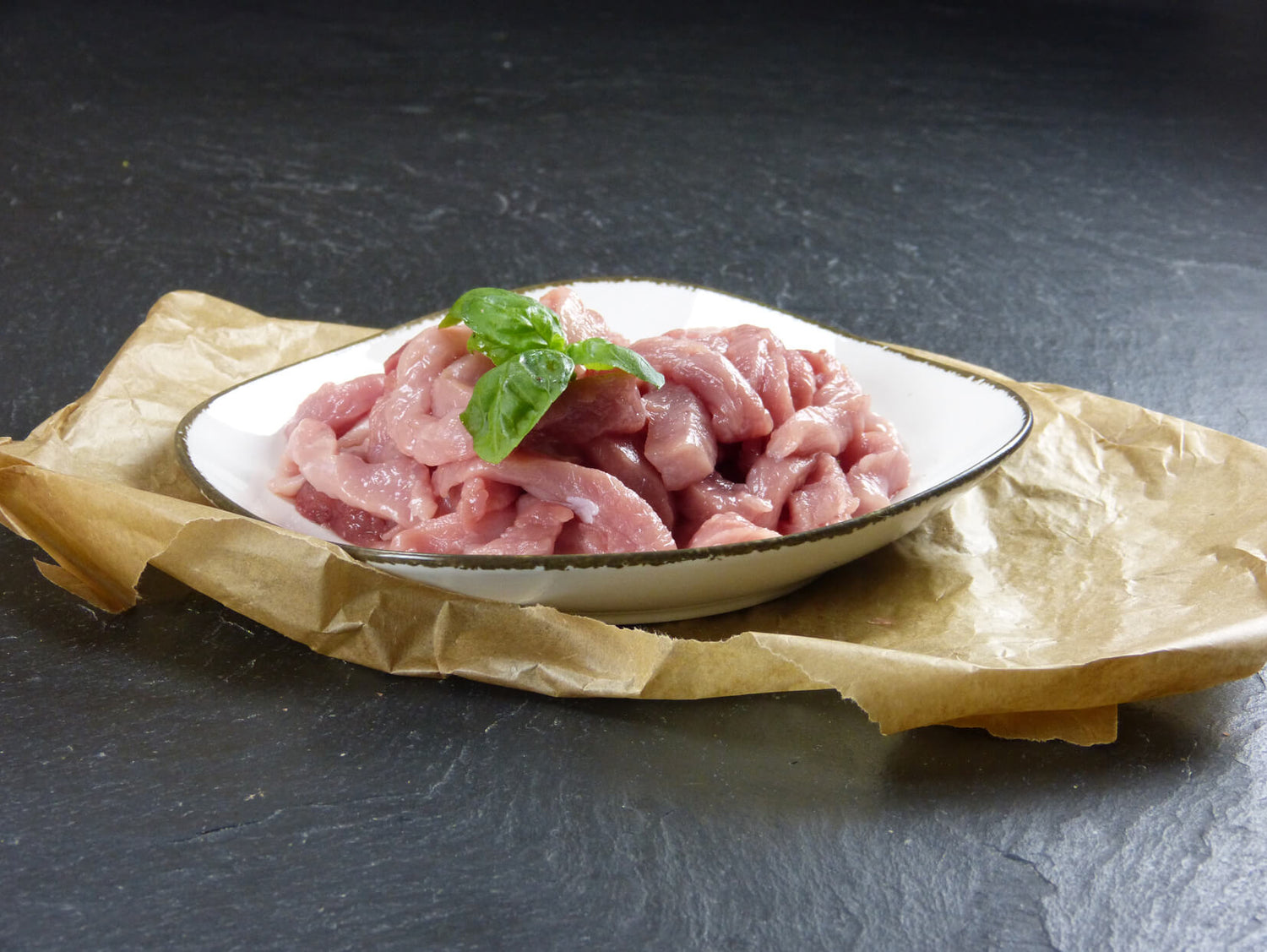 Unser Schweinegeschnetzeltes ist extra mager und bereit für die Pfanne!