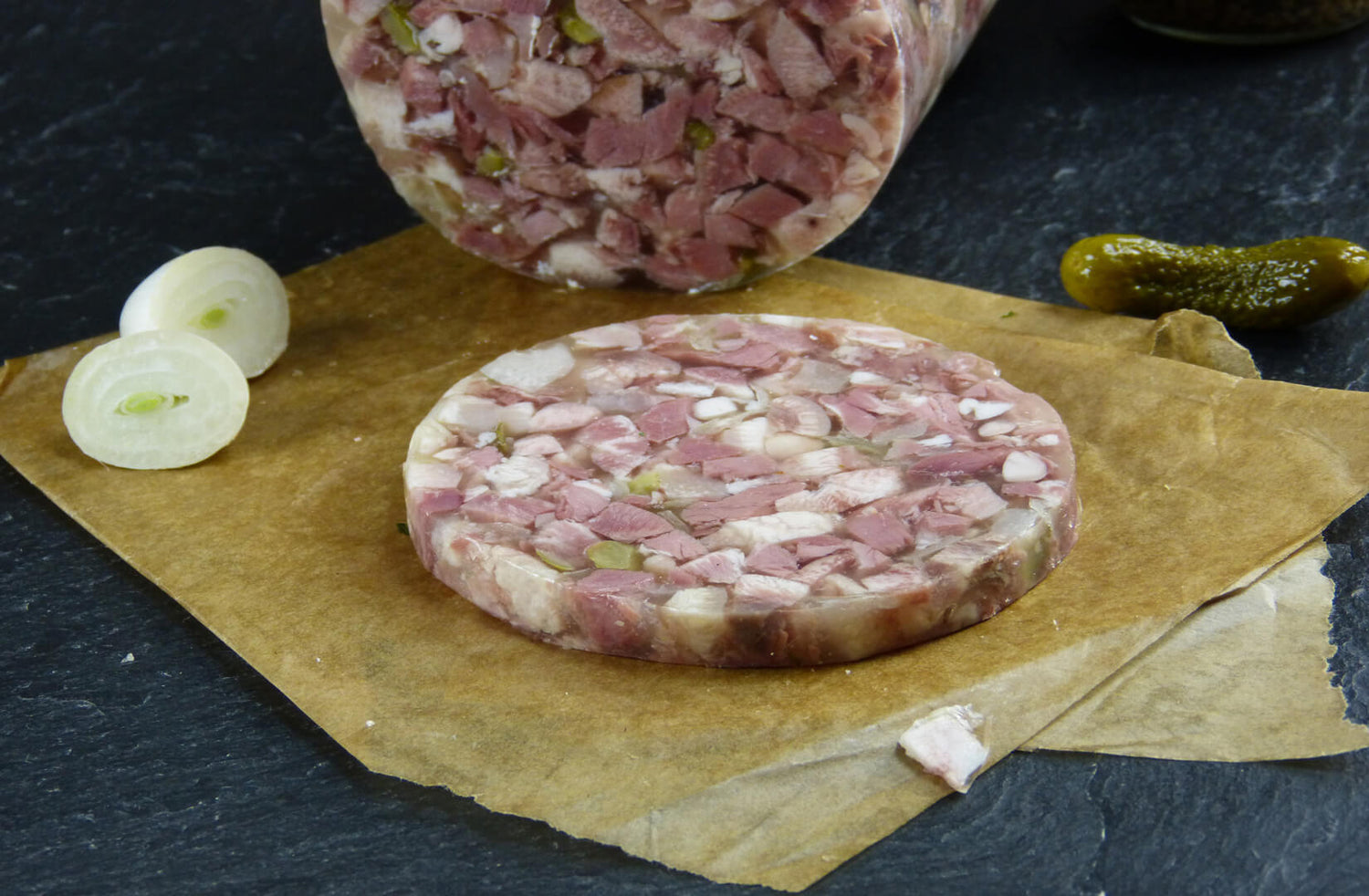 Leckere Schweinskopfsülze mit Gurken Riegel vom Moselmetzger kaufen